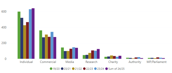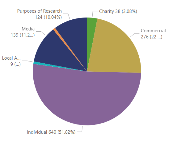 Before, most requests related to Thames Valley Police (TVP) or the Department for Work and Pensions (DWP). However this year, 68% of all requests have been part of legal investigations.