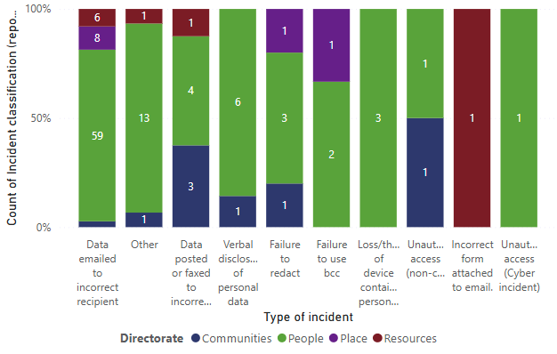 The most significant type of incident occurring within the organisation is data sent to the wrong people. About 4% of these breaches were reportable to the ICO.