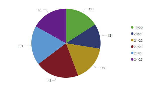 Between April 2024 and the end of March 2025, there were a total number of 120 security incidents recorded through the formal incident process, with a total of 6 reportable breaches to the ICO, down from 9 reported in the previous year.